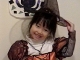 | 今年は魔女っ子なのよ。帽子もついてるの。だけど香織の頭ってばデカすぎて、かぶれないのよ。 | ![]() |