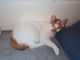 | ネコってさぁ、ふつ〜、横に丸くなって寝ない?でもルルは違うのだ。縦巻きなの(大笑い) すっげ〜変。やっと撮影に成功したのだ! | ![]() |